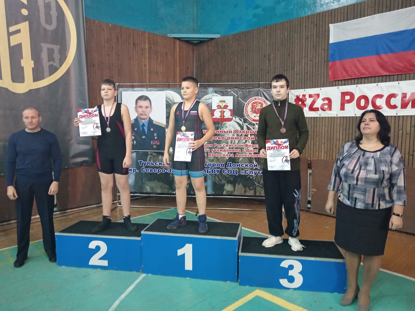 I место – Эдуард Савенков, в своей возрастной группе и тренер по лыжным гонкам Татьяна Гутнева.